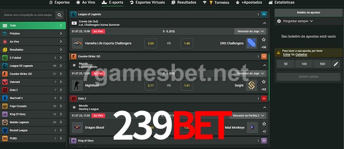 O 239bet oferece uma grande seleção de opções de apostas em e-sports com probabilidades competitivas
